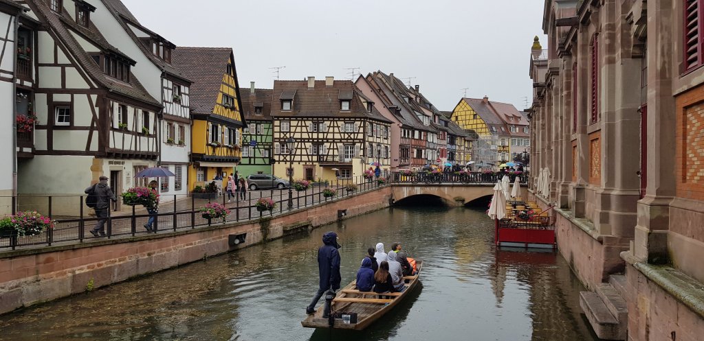 On a day nowhere near as lovely as its predecessor (drizzle – boo! grey skies – hiss!) we finally set out to explore Colmar properly. Visitor map firmly in hand, we take the path most traveled, the tourist route through all the sights.