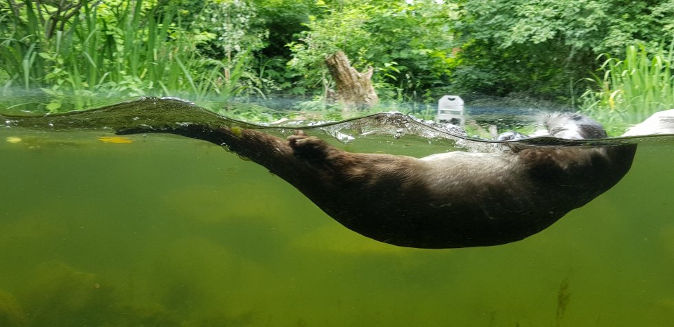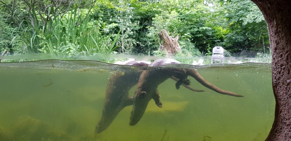 Our two are natural show offs, playing up to the crowds in the underwater windows. I’m otterly beside myself with joy. I do love them so.