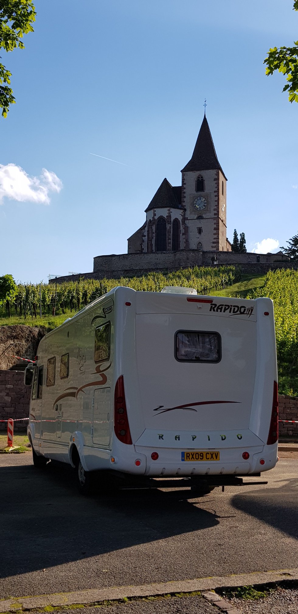 One of the best things about meandering in the motorhome with only the vaguest of directions in mind, is the discoveries you make along the way. It’s in this mindset that we cross paths with the Alsace Wine Route which winds through the foothills of the Vosges mountain range covering 170 kilometres across five distinct areas. The Route boasts over 15,600 hectares under vine across 4,200 wine growers, of whom 890 sell direct to the public. Sounds like thirsty work to me! It’s extraordinarily pretty, with the vines nestled into every available bit of land as far as the eye can see.
