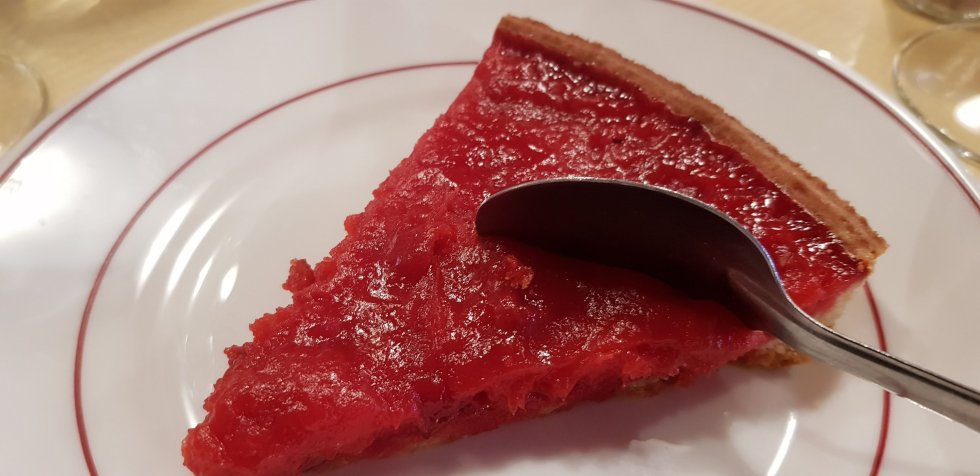 For dessert, it’s a Lyonnaise speciality, a praline tart for us both. Its sweetness is offset perfectly with an espresso.