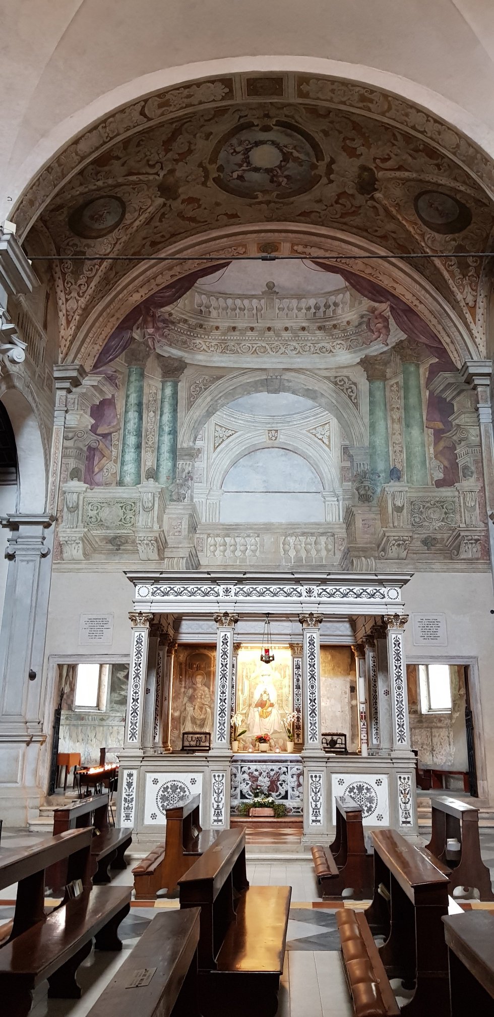 We pop into the 9th century church, the Santa Maria Maggiore. Rebuilt in the 14th and 15th centuries, its treasures are beautiful frescoes