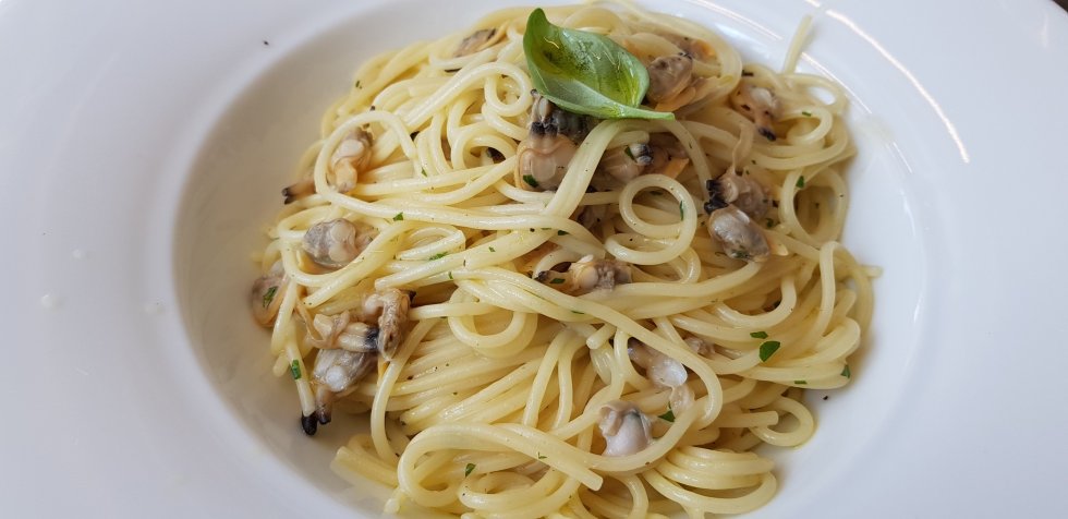 I opt for a classic: spaghetti vongole, with teeny weeny clams, no larger than a fingernail, in a light white wine sauce.