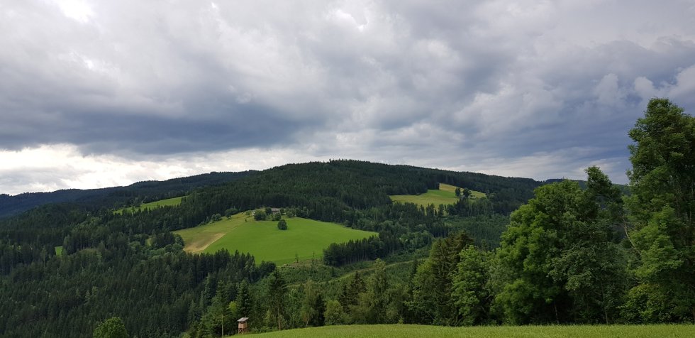 We stop at the top, 1600 metres above sea level, in amongst the ski fields with cows for neighbours. The views are spectacular, if little cloudy, and we’re even high enough for wild lupins to flourish.