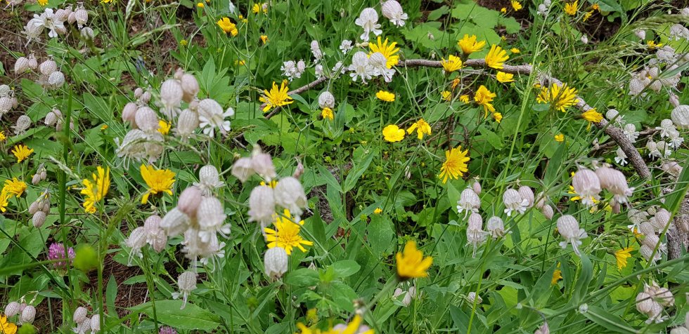 Nature is always the perfect antidote to what ails you. It’s the micro scale that catches my eye today – random patches of flowers that occur nowhere else, clusters of grasshoppers who cast a beady eye over proceedings and tiny butterflies fluttering about. It’s very peaceful.