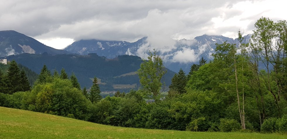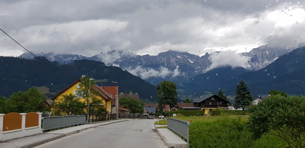 By day’s end, snow capped mountains are in sight. Thanks to trying to find the perfect spot for the night, we end the day in the village of Admont.