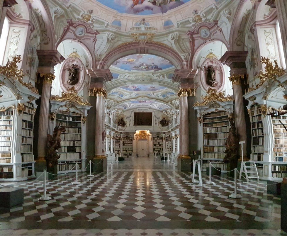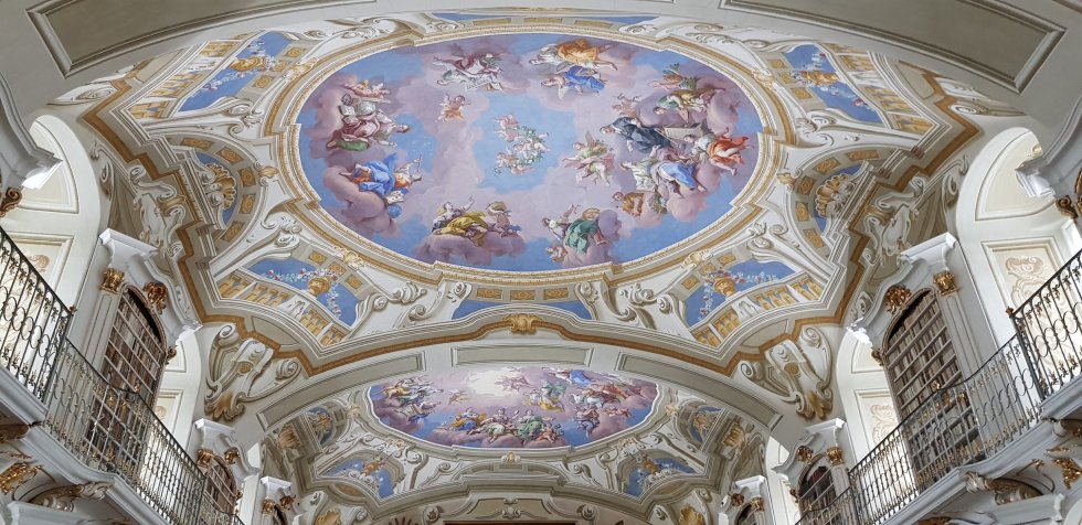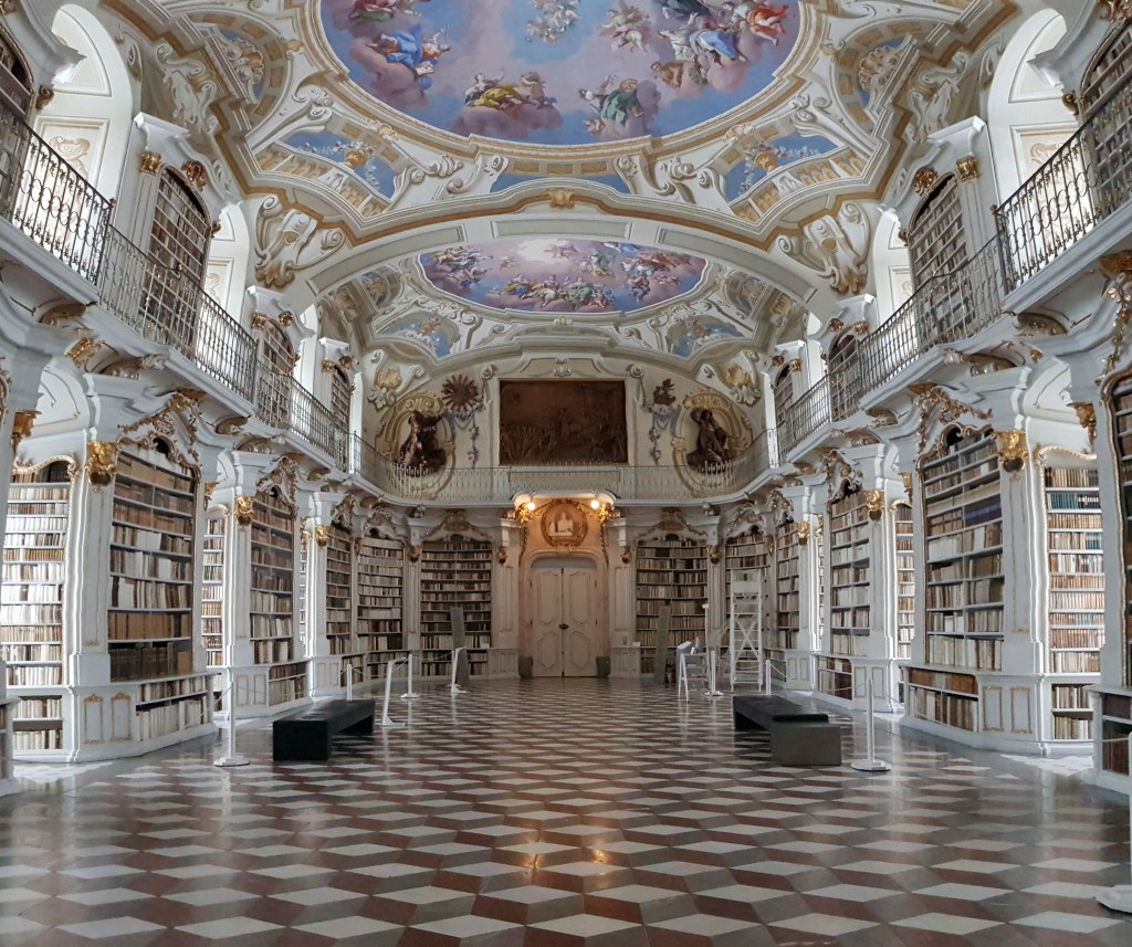 Built during the Age of Enlightenment under the guidance of architect Josef Hueber, work was completed in 1776. Across three rooms are seven domes, each depicting a frescoed aspect of (then) modern enlightenment and learning. Incredibly, the artist who painted the frescoes, Bartholomew Altomonte, was 80 when he commence work on them.