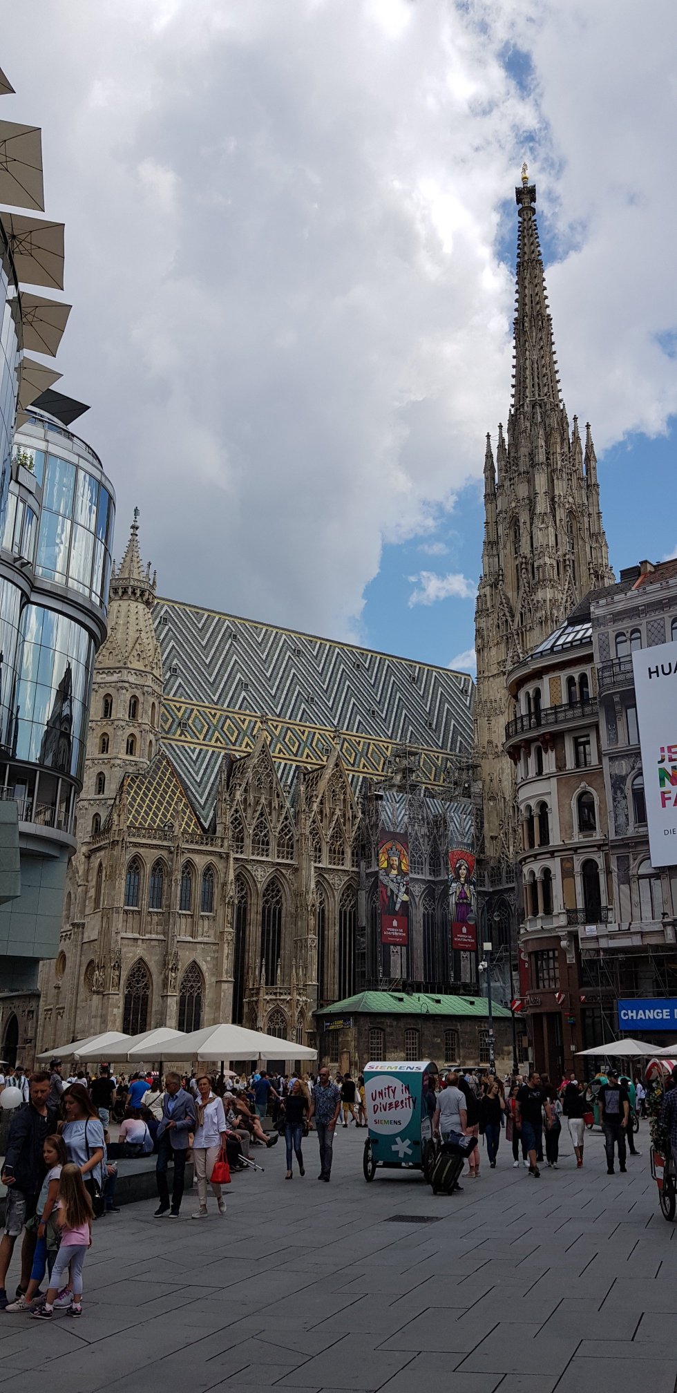 We’re staying a little way out of the centre, a short train ride in. The service is excellent: trains speed though every few minutes, even on a Sunday. It’s not long before we alight in Stephansplatz, right next to Domkirche St Stephan. Magnificent it is too, towering over the city, centuries of history.