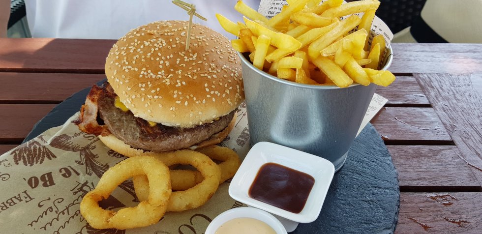 By the time we reach the top, Himself has only one goal in mind. Lunch! “I’m starving”, he says and proceeds to demolish a burger and chips.
