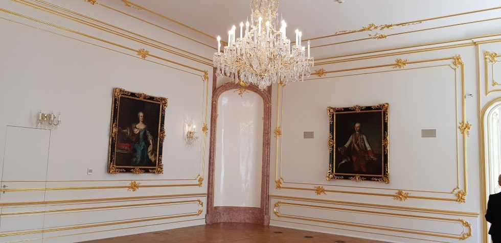 We learn of the castle’s long history and its painstakingly restoration. It was heavily fortified in the 11th and 12th centuries, rebuilt in a Gothic style in the 15th century, then furnished in a rococo style in the 15th. All this work was lost though, when the castle burnt down in 1850. Restoration didn’t commence until the 1950s. It took decades – the work is flawless.