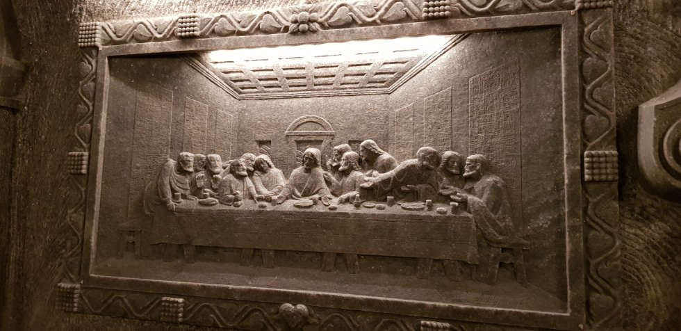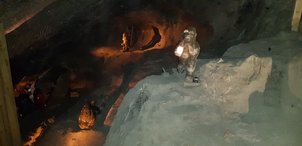 Periodically, we enter a chamber, once an active mine, now a showcase featuring salt sculptures – national heros, political figures and royalty.