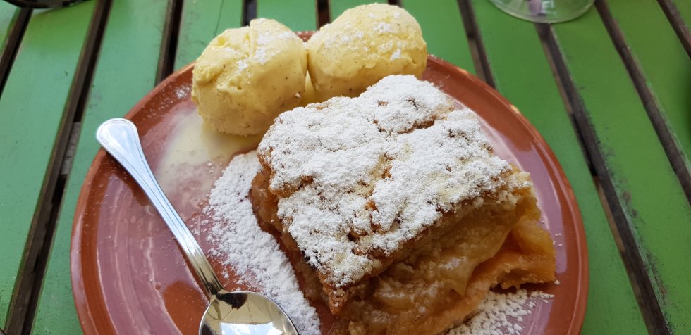 Having had pierogi for the last three meals running and not actually being hungry, I’m at a loss, until I spot grandma’s apple pie on the menu, with homemade icecream. That’s me sorted. Tanks-a-lot babunia, you nailed it.