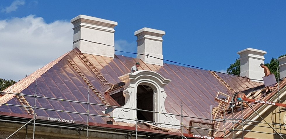 They’re replacing its roof…in glorious copper. It gleams a rose gold in the sun looking utterly magnificent. In all the time we’ve toured manor homes, palaces, Paris, Loire Valley chateau, Versailles, I’ve never quite appreciated how stunning their (now tarnished green) copper roofs must have been when they were first built. Copper catches the light so beguilingly it’s quite impossible to tear your eyes from it.