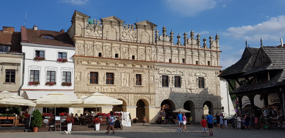 In the market square, the stars of the show are two merchants’ houses built side by side for brothers, Mikolaj and Krzysztof Przybyla by the same architect in 1615.