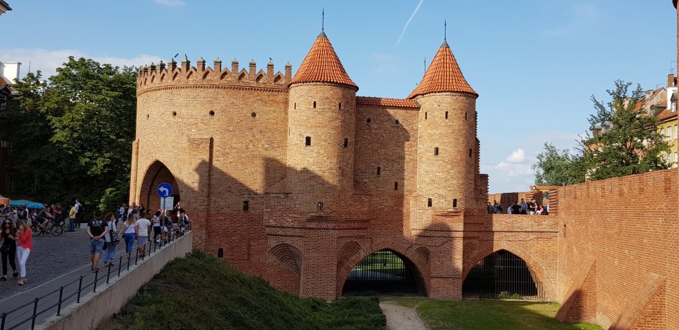 Our taxi drops us off in the heart of Warsaw, Plac Zamkowy, bordered by ancient city walls,