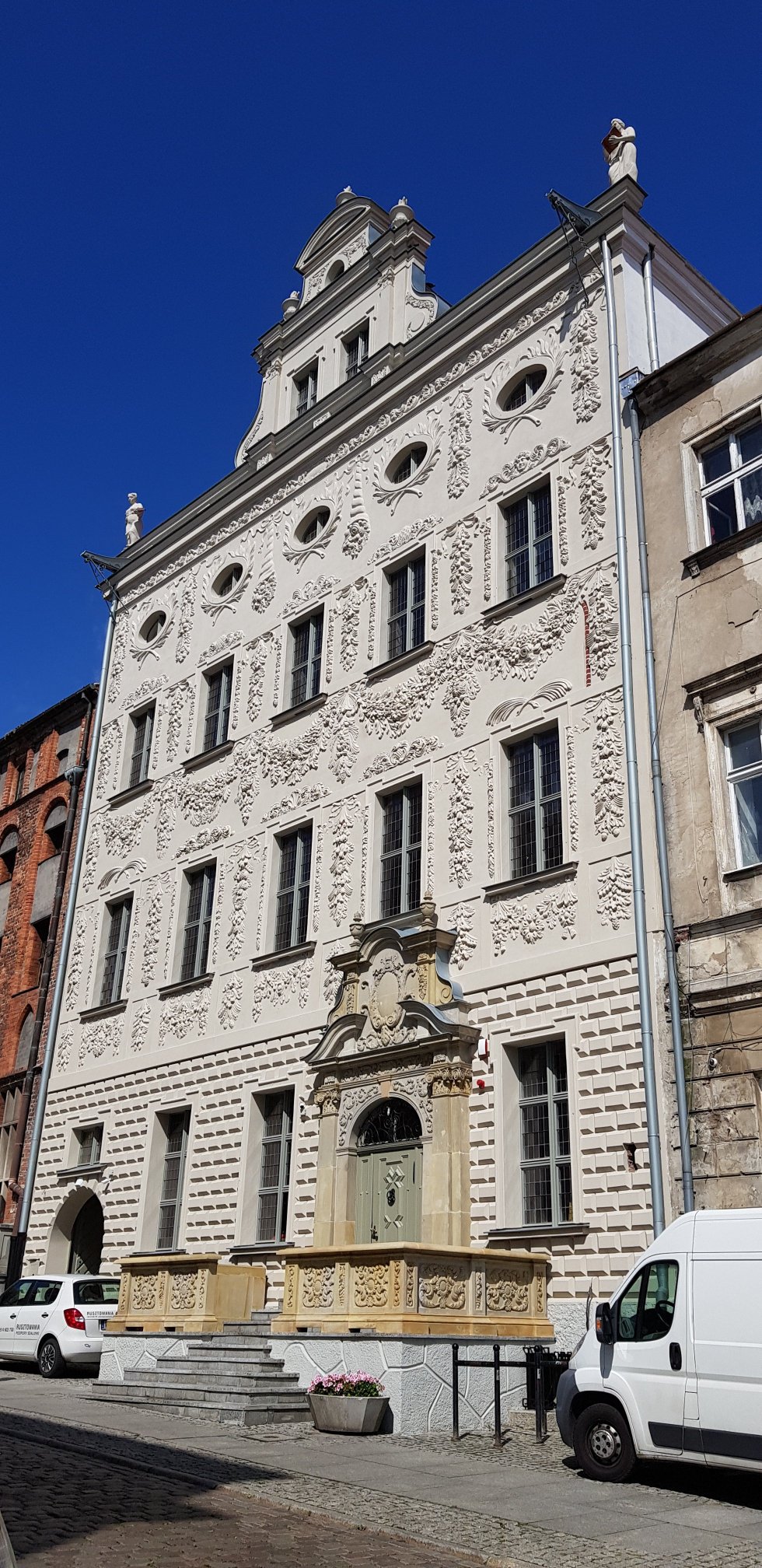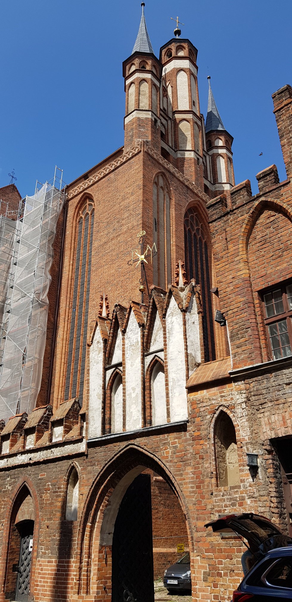 built from the bricks from the ruins of the Teutonic Knights Castle – its ruins are behind the Burgher’s Court.