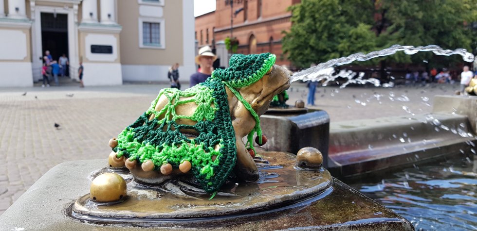 Later I find out he’s The Raftsman, a local legend who saved Torun from an infestation of frogs, with his fiddle. What the little crocheted outfits on the frogs are about, I couldn’t tell you.