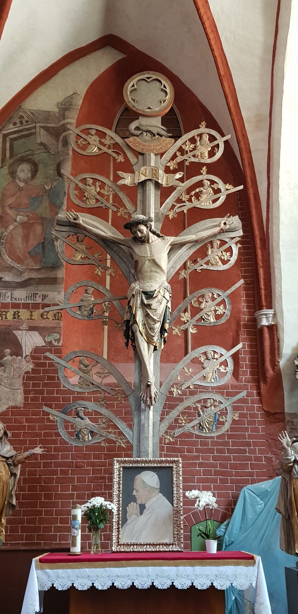 and Tree of Life sculpture, depicting Christ nailed to a tree, its branches featuring the prophets.