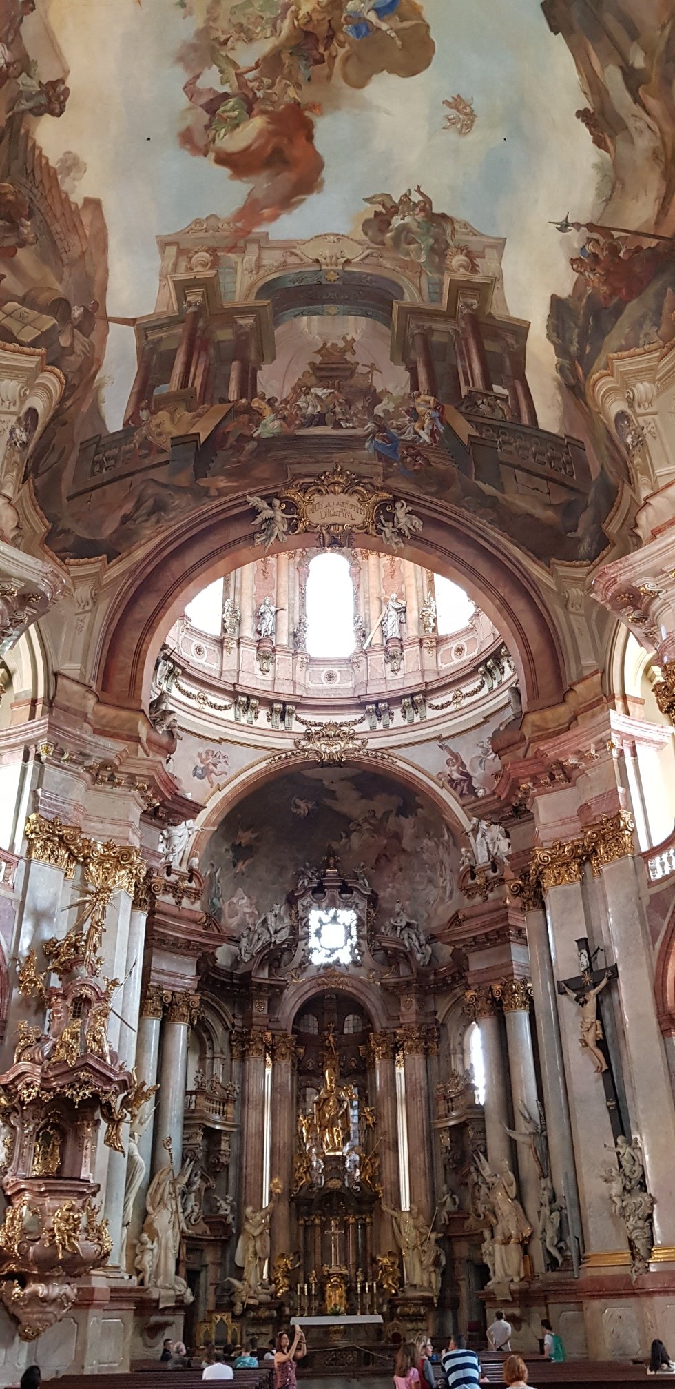 Castle toured, we pop into the Church of St Nicholas, built over 60 years, the work of a father and son architectural team. It’s considered a High Baroque masterpiece, although sadly neither of them lived to see it completed. It’s fabulous, gloriously decorated by leading Baroque artists of the day.