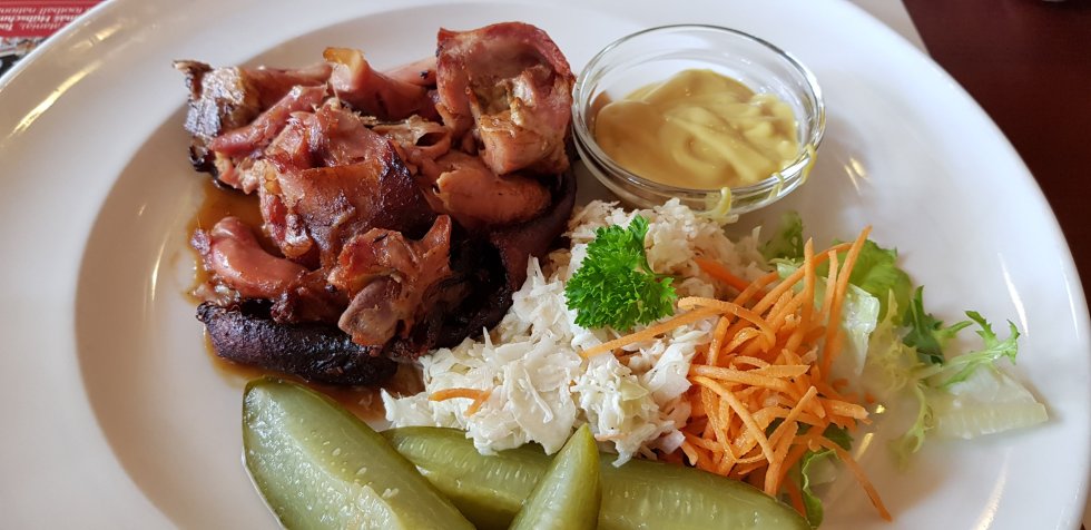 We have more successful around Wenceslas Square (pictured above) where we also stop for lunch. Himself orders a spit roast,