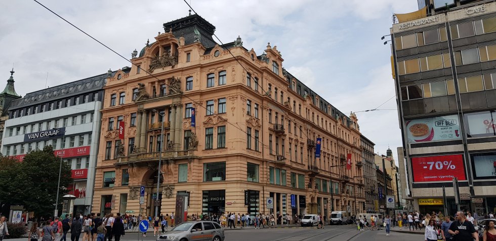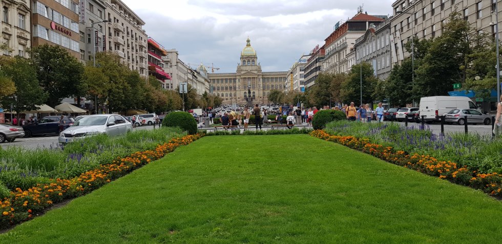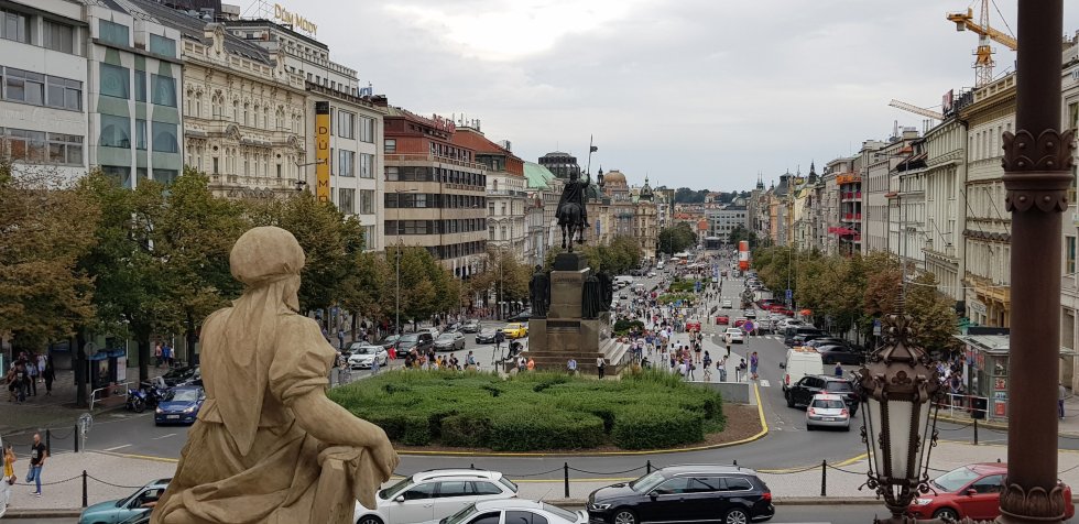 Wenceslas Square is named for the patron saint of Bohemia, a statue of his likeness looks down the boulevard.