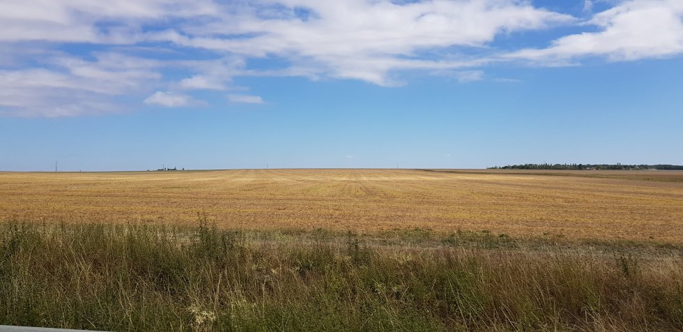 At over 200 kilometres, the drive takes most of the day. We drive through endless farmland stripped bare of summer crops.