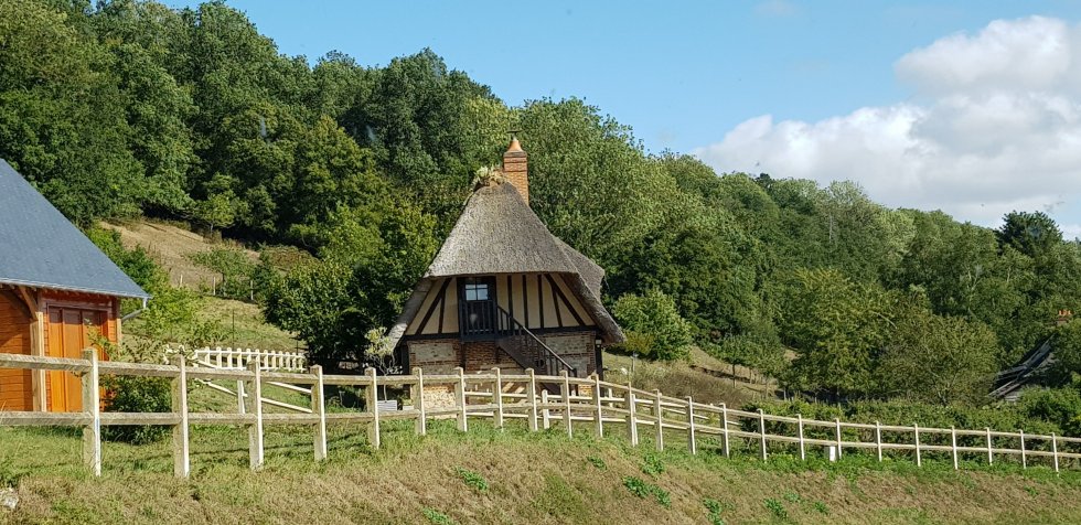Our arrival in Normandy needs no signpost. It’s heralded by half timbered houses, dairy cows and greenery, at last.