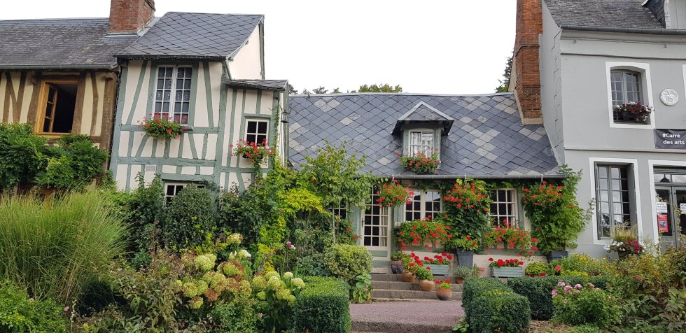 It’s not long before the rain comes. It’s a downpour, reminding us quite succinctly, why Normandy is so much greener than its Centre counterpart. We make a dash for the motorhome, biding adieu to Le Bec-Hellouin, enroute to Honfleur, our last stop in France.But not before I capture the thatched farmhouses that edge the village on our drive out.
