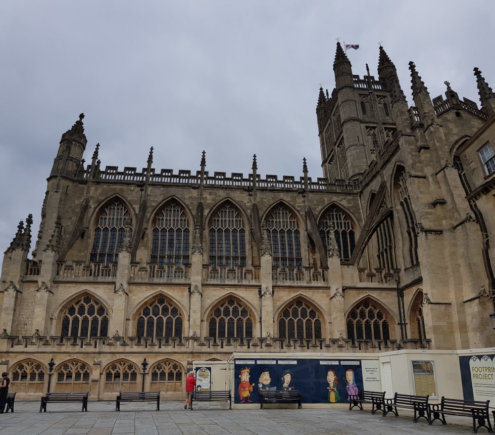 “More than Westminster Abbey” a guide proudly tells me. It’s the ledgerstones that are behind the current restoration project – the supporting structure under them is failing, causing the floor to collapse. Over a four year project the ledgerstones will be removed and repaired, and the supporting structures rebuilt. It’s a painstakingly slow process. As an added bonus, whilst the underfloor work is being completely, the team will take the opportunity to divert the million or so litres of hot springs running into next door’s Roman Baths to provide free underfloor heating to the Abbey. Ingenious.
