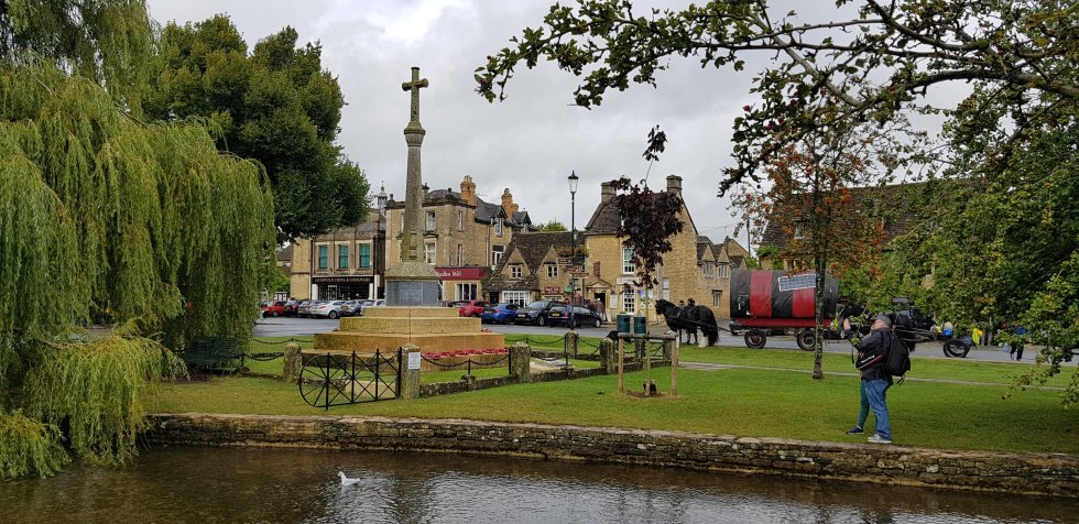 We’re a day late, but we’re here! Having been charmed by Burford yesterday, Bourton-on-the-Water is a mere 12 miles away through one green corridor after the other.