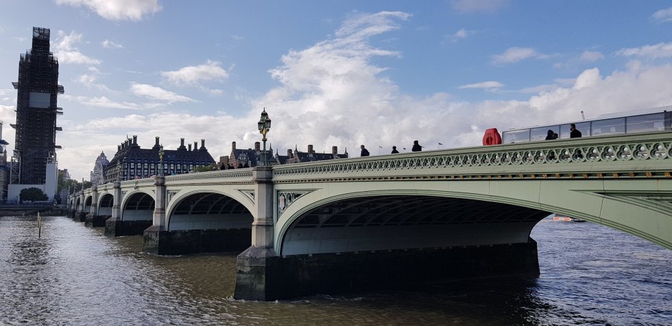 On the way out, we see Big Ben. Well, the shape of Big Ben – it’s under scaffold, undergoing restoration.