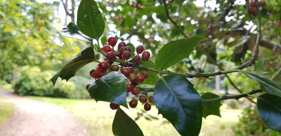 and a wide variety of holly – topiaried balls line the main entrance. Their Christmas red berries are well on their way.