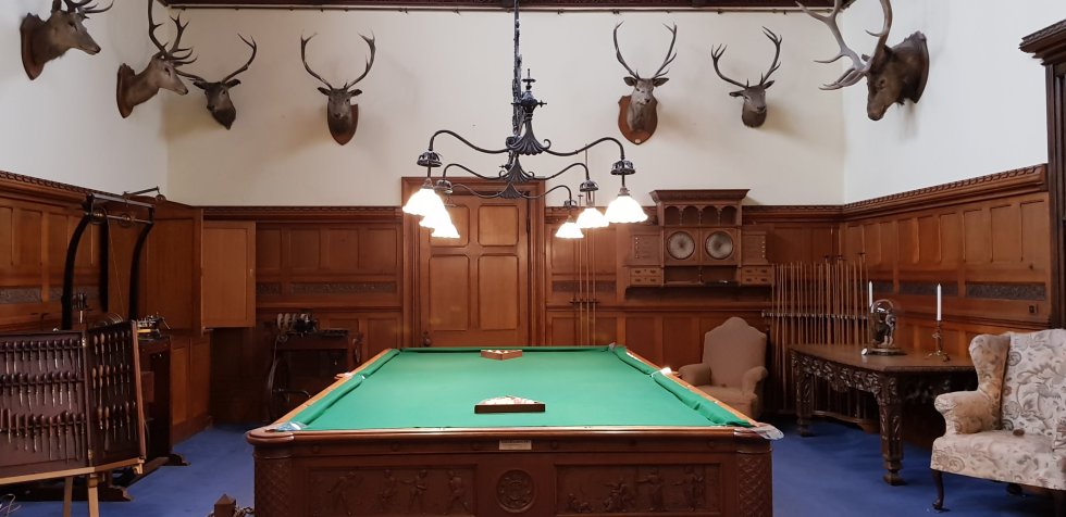 No expense was spared here. There’s a boy’s room, complete with a heated billiard table, an automated score board (this was the 1800s remember) and a card nook.