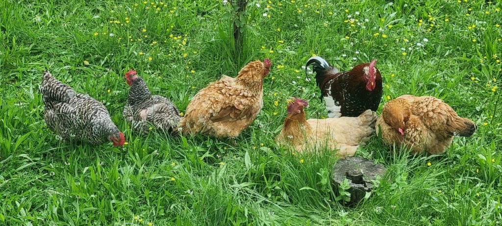 Along the way we have great views of the chateau and meet flora and fauna on a micro and macro scale including this sweet lady bird, very fancy chickens and impressively imposing guard dog.