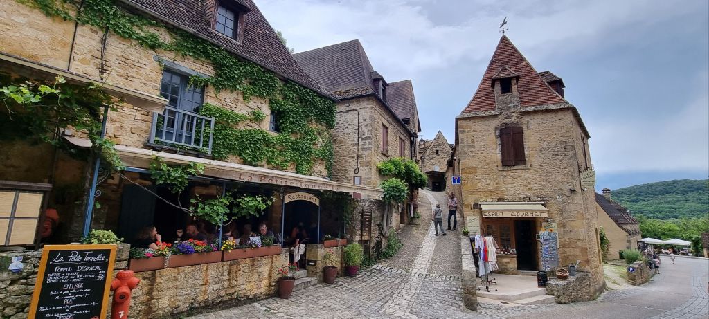 It’s a short hop up the road to Beynac-et-Cazenac, yet another Dordogne Les Plus Beaux Village. We’re certainly spoilt for choice along the river. We’re still in what I’ll term ‘England in shorts’ – some 100,000 English resettled in the Dordogne during the 80s and 90s. That’ll explain the fish and chips on offer in tonight’s campground, and the more often than not, English chatter we hear everywhere we go.