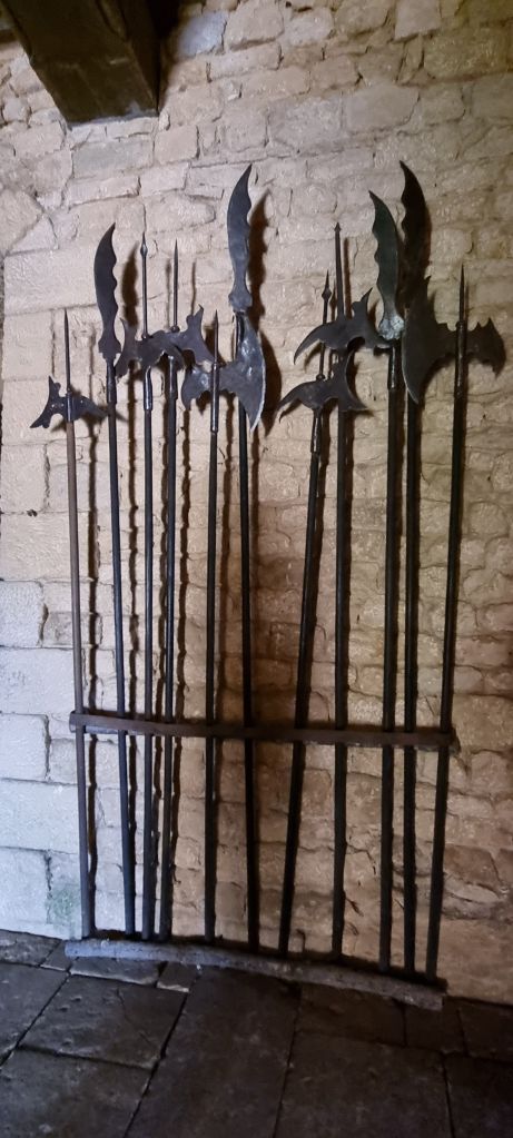 Rising above a precipitous cliff, Chateau de Beynac affords strategic views of enemy approach either down river or up cliff. Lots of forward warning and opportunity to sling burning and pointy things at them in defence. The weapons on display make me very glad that we live in the 21st century.