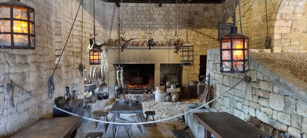 Always fascinating are the kitchens. This one is particularly interesting as it’s presented intact. It even has a drawbridge entrance under which sat a pit full of pointed sticks. If one was foolish enough to attempt an unwanted approach through the kitchen, they would fall into the pit, onto said pointed sticks and then have the disheartening experience of having a vat of fat poured on them and being set alight. Not terribly welcoming in the Middle Ages, then. No popping in unannounced for a spare cup lard. (There’s an excellent Monty Python skit waiting to be written here – a soldier arguing with the cook, wanting a vat of fat while she’s trying to cook lunch)