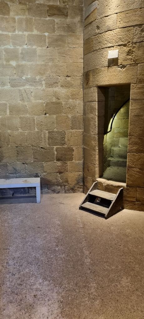 It’s a quick tour as it’s a tiny spot with a population of 600. One of the towers is open, up a steep entrance into its first level. We both manage this but one look at the ever tightening spiral staircase leading to the top gets a firm “no” vote from us both. Still, it’s an interesting insight to the towers that once protected this village. The abandoned woodfired oven has me dreaming of sourdough bread.