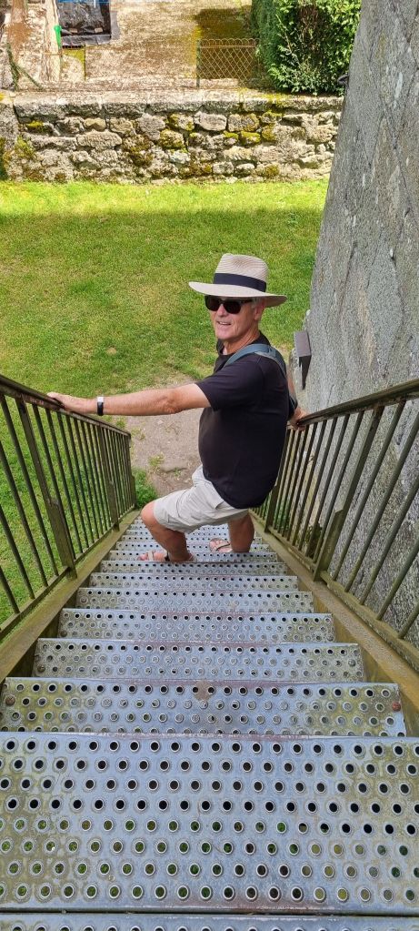 It’s far too hot to sit in the motorhome. Instead we pack a picnic (a bottle of rose is a picnic, yes?) and nestle into the medieval garden alongside a stream. I catch up on the blog as Himself catches up on the news. Surrounded by shade, the soothing rythym of the stream and the twitter of bird song, it’s a little green oasis.