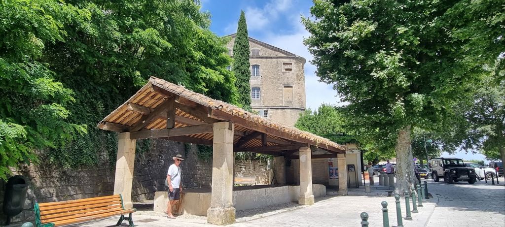 Walking to the village is an olfactory delight – honeysuckle, jasmine, lavender scents waft through the air.  There’s a laverie of course, this one fancier than most, featuring a system to heat water and a hanging rack.  Very practical.
