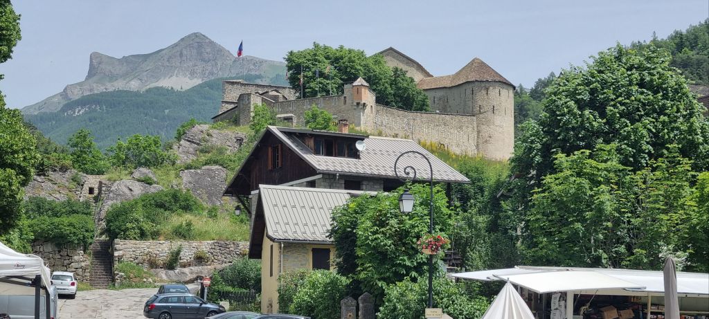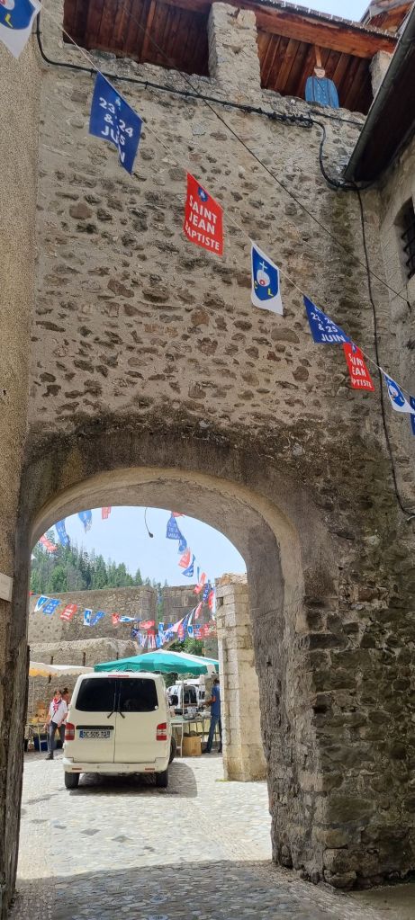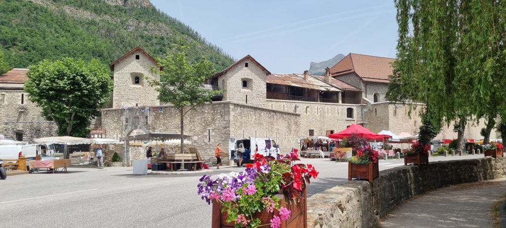 With its tall buildings, pretty cobblestoned streets and the tail end of a market in progress, Colmars’ is a welcome break in the day’s drive.