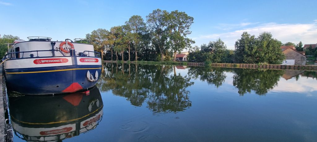 The following day we progress only a little further, settling on the Bourgogne canal.  Glorious reflections in the afternoon light broken only by an occasional duck.