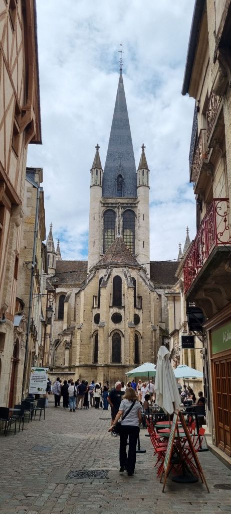 One thing Dijon certainly has, is an endless choice of shopping with a Galleries Lafayette, endless boutiques and specialty stores including of course one specifically for its famous Maille mustard, produced here since 1747. Having spent the last 70 odd days in peaceful countryside, it’s all a bit overwhelming. To be confronted with endless retail and crowds takes some adjustment.