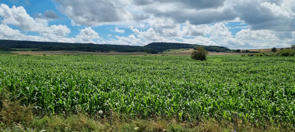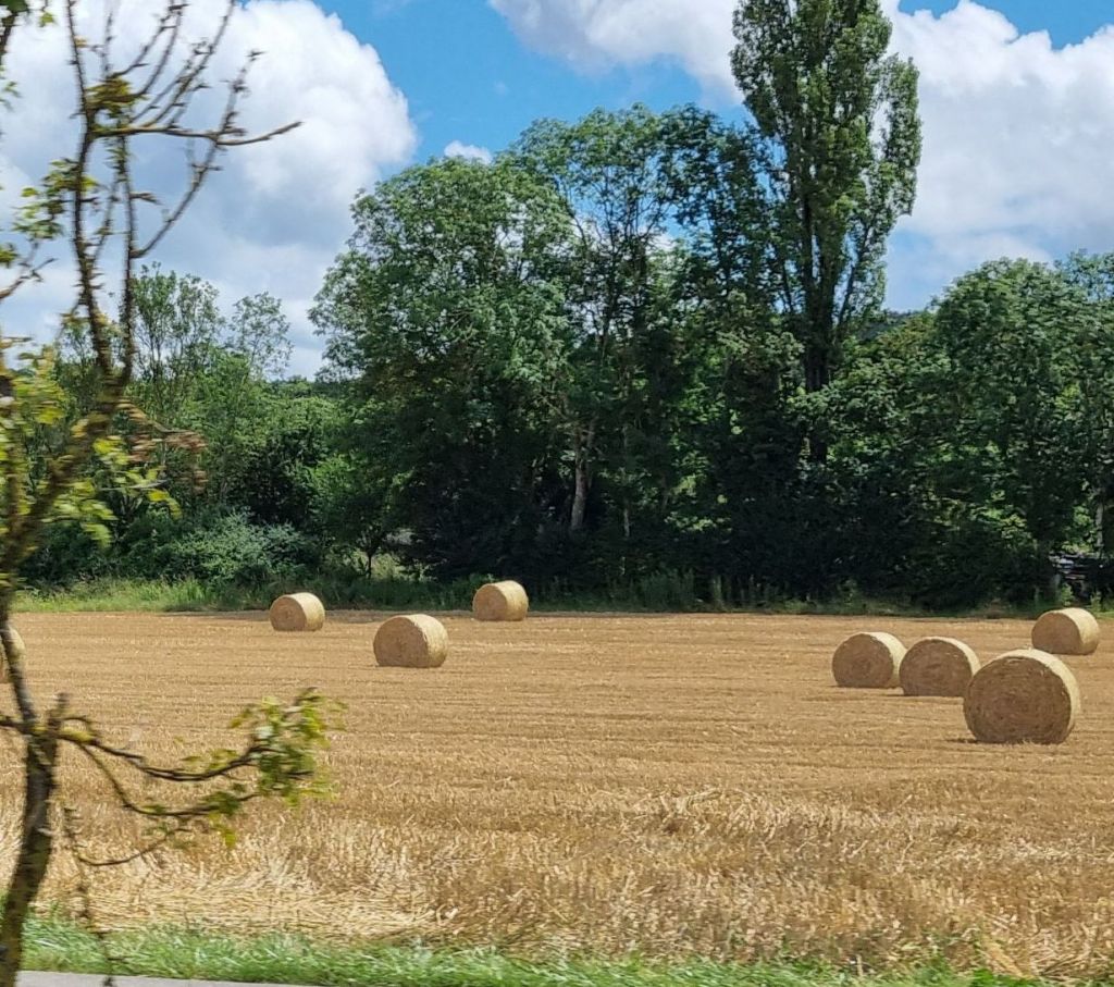 Cornfields abound, indispersed with harvested wheat crops, rolled meadow hay and the occasional sunflower crop, just opening their faces to the sun. Birds of prey take flight above, the younger birds grouped for safety in twos and threes. It’s heartening to see them – they’re a good indicator that the crops teem with life, unsprayed. It makes sense – over the years, we’ve watched the ‘bio’ grading proliferate in supermarkets, a guarantee the produce is organic.