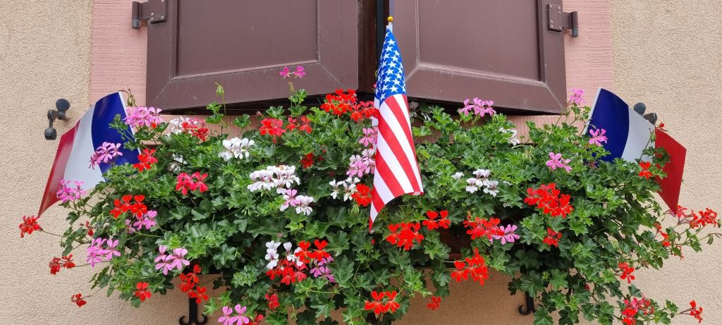 Both French and American flags fly proudly. One thing about the French, they remember and they honour. We see displays of how the village looked after war’s destruction, set next to key landmarks which are now rebuilt.