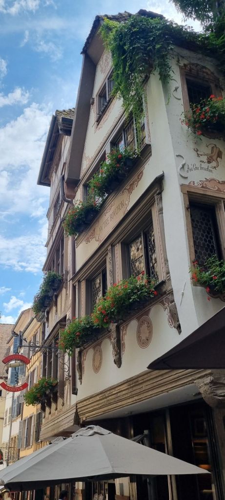 A short walk later, we’re there. Small problem – it’s closed. Google was right about the hours, but there’s a note on the door: temporarily closed on Mondays and Tuesdays in July and August. Hmmmm. Not best pleased. Am moments away from some seriously rabbitty foot stomping. Himself saves the day, recalling that Galleries Lafayette has a store in Strasbourg – they had my shoes in Dijon he reasons and may well have them here. Off we set. It’s on the other side of the city, of course. Well, where else would it be? 🤔 And at last, success. In my size, in stock and in a bag, ready to come home. YES! Victory is indeed sweet. I practically skip out of Galleries Lafayette, happy as a lark. I love them.