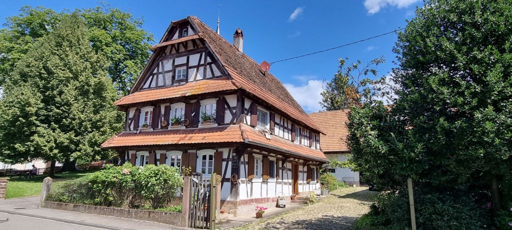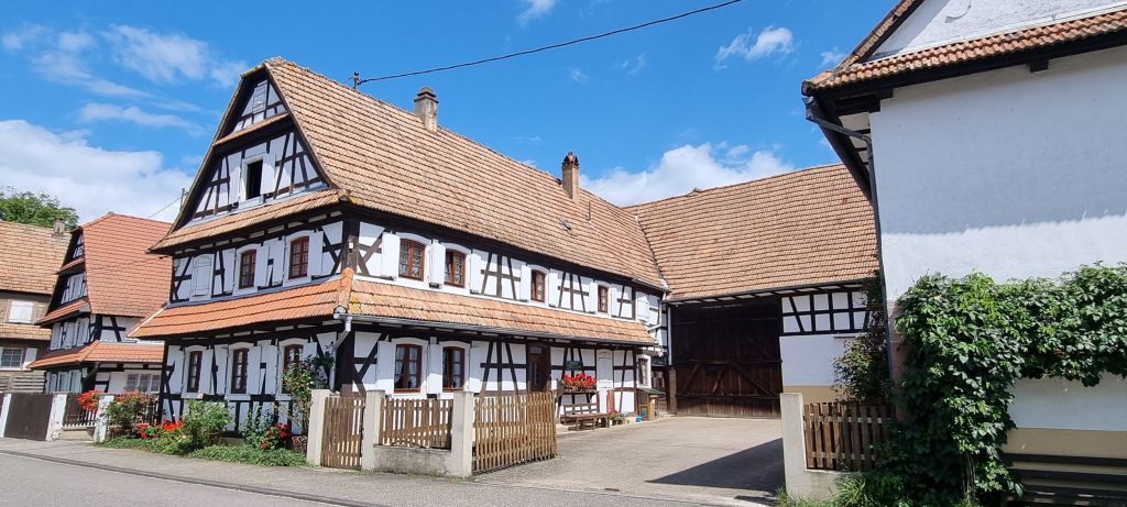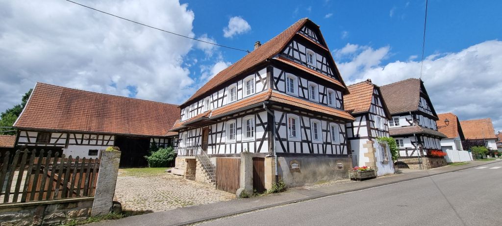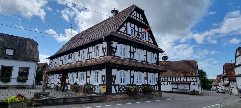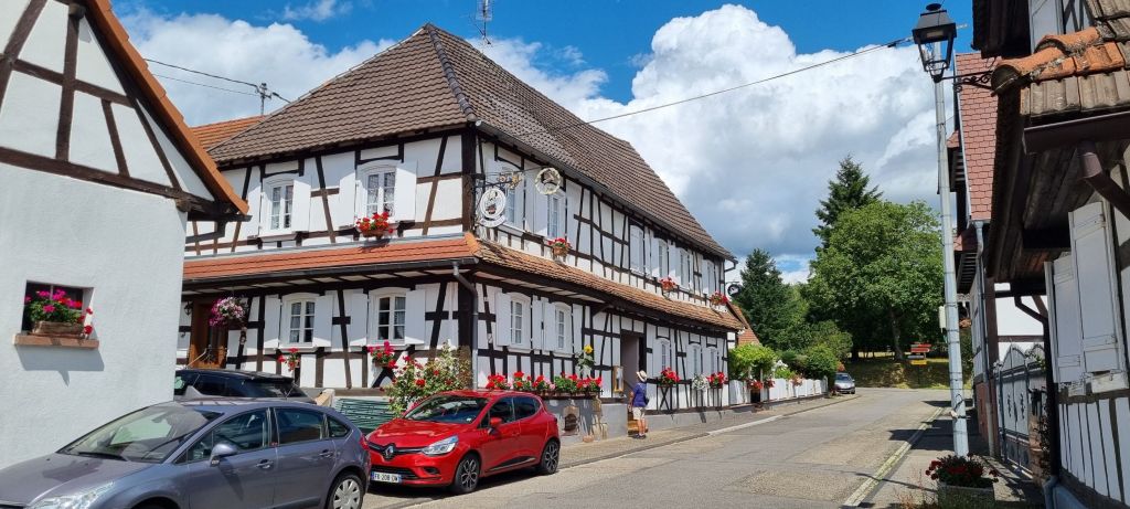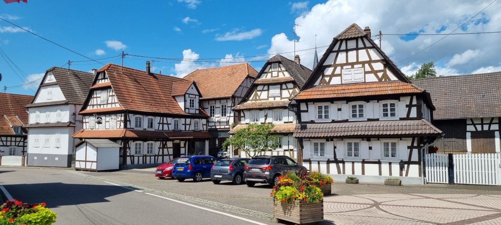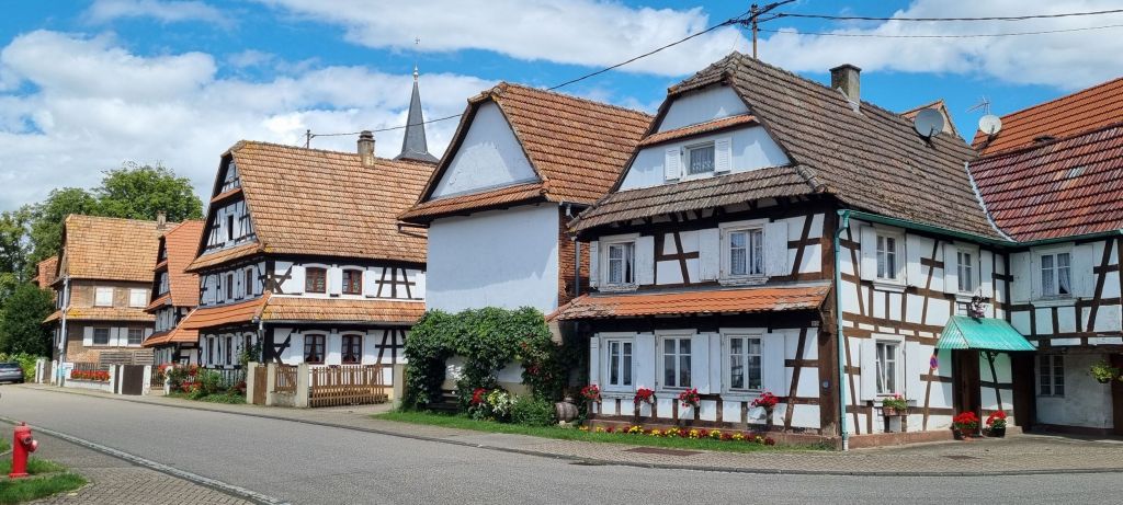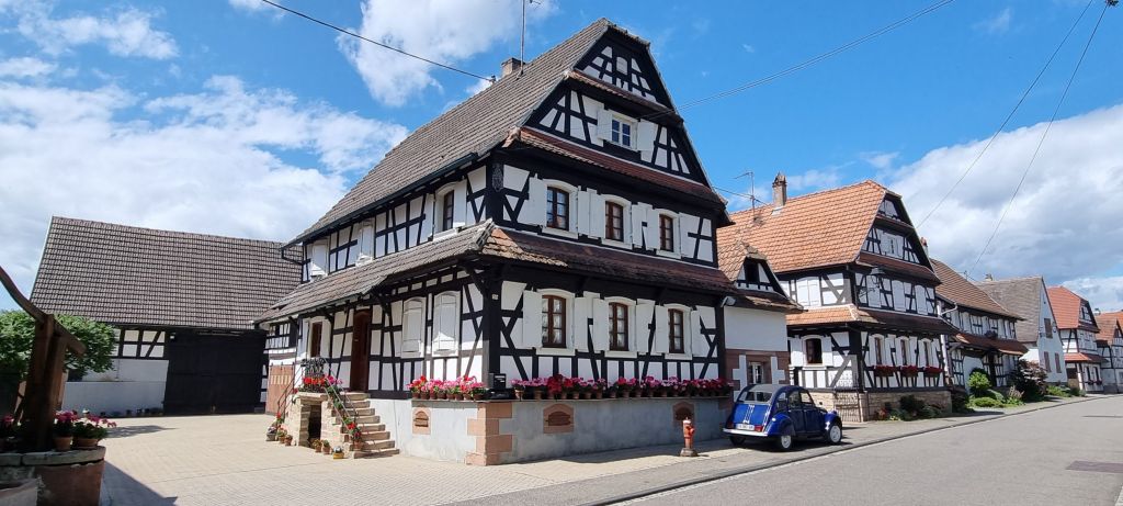 Most of Hunspach’s buildings are from the 16th and 17th centuries with white cob walls and half timbered frontages. They have centre entrance doors that lead directly into the living area. Many have unusual convex glass windows, designed to allow residents to look out freely but obscure the view in. Old school ingenuity.