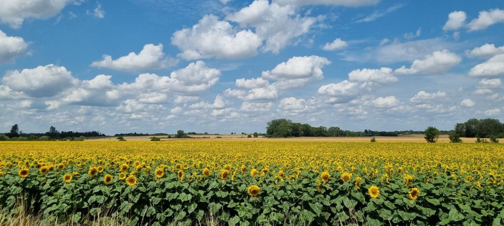 Our drive there belongs in an art gallery – coloured by Van Gogh, gloriously lit by Turner. Endless fields of sunflowers lifting their bright faces to the sun, shorn golden fields marking the end of farmers’ toil, harvested in neat straight lines. Deeply satisfying, I’d imagine, to harvest a crop you’ve grown. It’s been a bumper year for farmers – meadow hay would easily be on its fourth harvest. It’s sweet, I imagine, filled with wildflowers. I still remember the meadow wildflowers of my childhood, on walks from my grandparents’ farm.