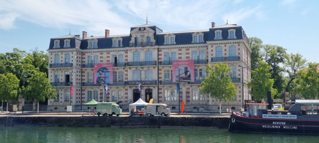 We arrive in Verdun late in the afternoon and it’s hot, hot, hot. Himself is disinclined to ride into town – too hot, says he. Usually my lament. But there’s no pressure – we’ve explored before and we’re here tomorrow. And there’s a pool! Moments later it’s swimsuits on and into the water – there’s nothing better on a hot summer’s day. Sunbeds set the stage for a never-ending loop of kids zipping through a water slide in an adjacent pool. So much energy – they shoot out then fly up the ladder to do it all again. I dare Himself to go through but he can’t be budged from his sunbed.