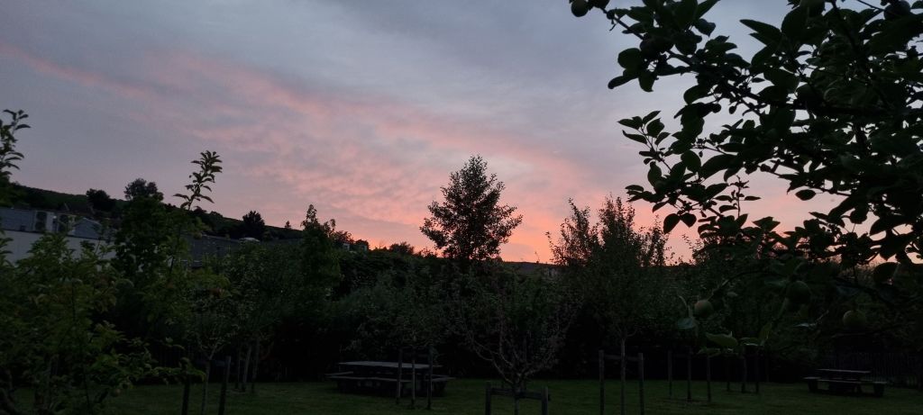 Vine plantings herald our arrival in Epernay at day’s end. We settle in a green Aire within an apple orchard.  There’s just enough light left to see the hospital chapel at the end of our street and admire architectural loveliness.    Bubbles will need to wait until tomorrow.