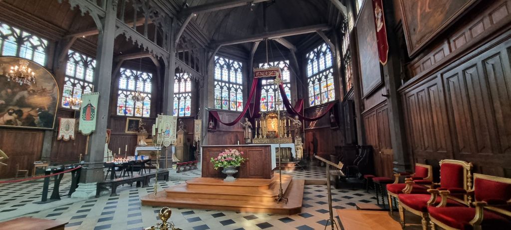 Left to my own devices, I have to admit that Honfleur’s just as magical as ever. There’s a 1,000 years of history in these streets. It’s no surprise that it was a favourite site of the impressionist movement. Artists were drawn like moths to the special quality of the light and there’s still a thriving artistic community here. I stop in at the church, of course, the oldest specimen of its type.